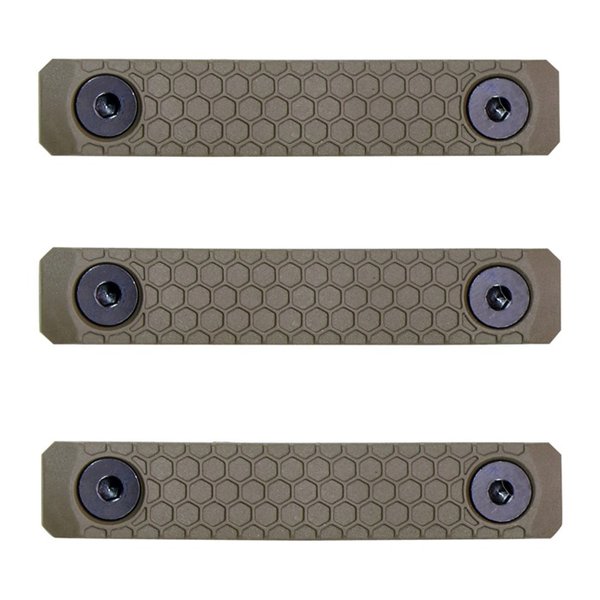 Slate Grips are a drop in/screw on upgrade to any grip, rail or any in-spec MLOK compatible system. The thin profile and raised texture offer an enhanced gripping surface for the user. These panels boast durable steel hardware and extra MLOK lugs (over some similar designs) for increased durability and security. The grip material maintains the ability to withstand high temperatures, providing the user with insulation. Designed by military and competition shooters, Slate Grips will interface well with many of the popular hand stops, vertical grips, and angled grips available on the market today. SBI polymers are optimized for stippling, but we highly recommend BLACK polymers for stippling only due to polymer dye discoloration. SBI’s FDE is a "peanut-butter" brown, and ODG is a direct match for Magpul's coloration. Sometimes photography may show it in a skewed color depending on the studio lights used.Available in 1 slot, 2 slot, or 3 slot variety, Slate Grips are sold in packs of three (3). Material: fiber reinforced high-temp polymer. Length [1-Slot - 1.57in long - 2-Slot - 3.16in long - 3-Slot - 4.74in long]