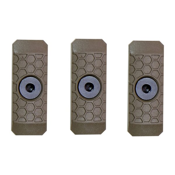 Slate Grips are a drop in/screw on upgrade to any grip, rail or any in-spec MLOK compatible system. The thin profile and raised texture offer an enhanced gripping surface for the user. These panels boast durable steel hardware and extra MLOK lugs (over some similar designs) for increased durability and security. The grip material maintains the ability to withstand high temperatures, providing the user with insulation. Designed by military and competition shooters, Slate Grips will interface well with many of the popular hand stops, vertical grips, and angled grips available on the market today. SBI polymers are optimized for stippling, but we highly recommend BLACK polymers for stippling only due to polymer dye discoloration. SBI’s FDE is a "peanut-butter" brown, and ODG is a direct match for Magpul's coloration. Sometimes photography may show it in a skewed color depending on the studio lights used.Available in 1 slot, 2 slot, or 3 slot variety, Slate Grips are sold in packs of three (3). Material: fiber reinforced high-temp polymer. Length [1-Slot - 1.57in long - 2-Slot - 3.16in long - 3-Slot - 4.74in long]