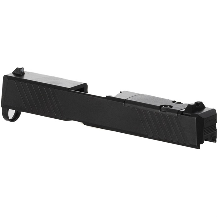 Ogni slide per Glock® inizia la sua vita come un billette di acciaio inossidabile 416, lavorato secondo le specifiche di fabbrica Glock®, in modo da accettare canne di fabbrica o aftermarket e "piccole" parti interne. Ogni slide è dotato di una finitura nera Nitride resistente all'usura.