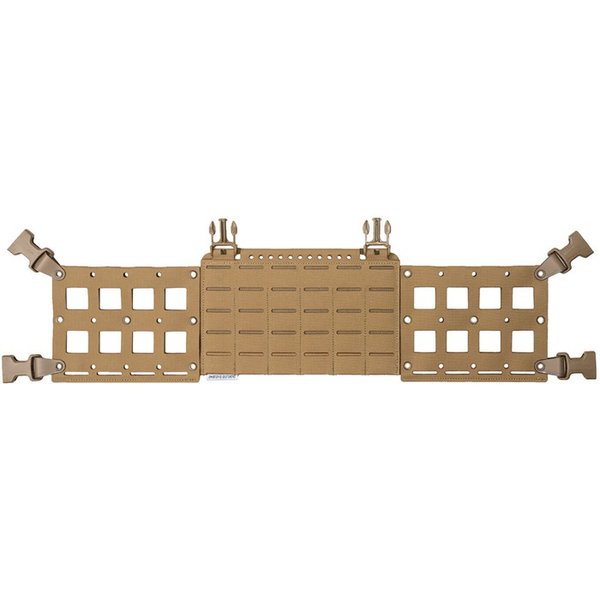 SPIRITUS SYSTEMS THE THING 3 The THING 3: Chest Rig Platform The THING 3 is a robust, rigid load-bearing platform designed to enhance the carrying capacity of your Micro Fight chest rig system or serve as a solid foundation for a custom pouch setup with its MOLLE-compatible front. Featuring a 4-column double-sided MOLLE field on each side, the THING 3 provides ample space for attaching pouches on both the front and back. * The Thing 3 requires the addition of a Fat Strap and Back Strap. SOLD SEPARATELY. * FEATURES: Fully Articulating Buckles: Each end of the THING 3 is equipped with secure buckles mounted on eyelets, allowing full articulation for superior flexibility and comfort. Quick Placard Attachment: A dedicated loop field and retaining loops make attaching your Micro Fight MkV, Micro Fight Mk4, or other brand placards a breeze, enabling fast, secure swaps between your chest rig and plate carrier. Additional MOLLE Field: The center of the THING 3 features a MOLLE field on both sides. This allows you the option to run 3 SPUD Pouches up front, or to place admin pouches close to your body. Modular Design: The center portion of the THING 3 can be separated to add accessories such as the SACK Pouch, Lunch Box, or Brunch Box via hook-and-loop fasteners. Fat Strap Compatibility: When not using a placard, the THING 3 comes with two 1" male split-bar buckles for easy attachment of the Fat Strap. Available in Coyote Brown and Black Only Since the THING 3 is designed to be covered by pouches, their offering it exclusively in Coyote Brown and Black. SPECIFICATIONS: Hook & loop attachment Dimensions 9 1/2 " x 5" Dimensions (Approximate) Length 22.5", Width 6" Some images shown with optional accessories, sold separately