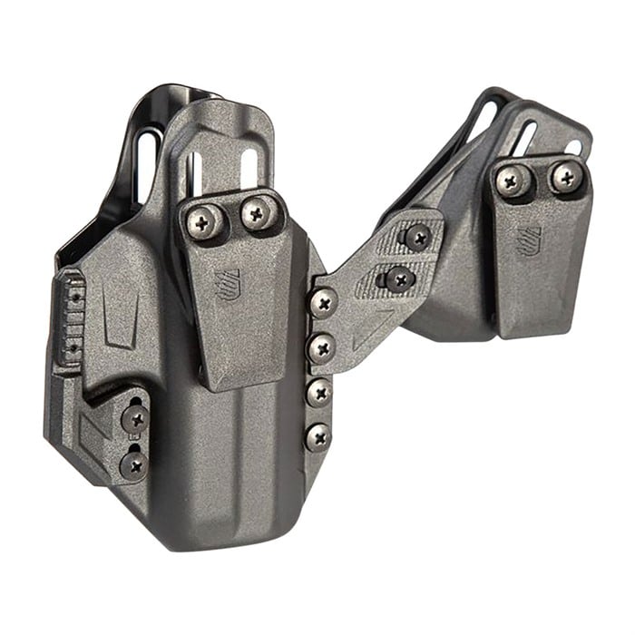 Introducing the most technologically advanced, modular concealed carry holster system that was designed never to be seen, the Stache ™ IWB. Designed by concealed carriers for concealed carriers, the Stache™ IWB holster system is the ultimate solution for everyday carry, out-performing the design and material limitations of Kydex®. Through meticulous engineering, the Stache™ holster delivers the optimal combination of comfort, rigidity and modularity; a feat not possible with Kydex®. It is designed to be worn inside-the-waistband, is constructed of impact reinforced, injection molded polymer and is compatible with a variety of Stache™ IWB holster accessories. Available in Base and Premium configurations. Premium configuration includes adjustable concealment claw to reduce printing, adjustable inside-the-waistband magazine carrier with belt clip, and an accessory attachment wing for joining holster and mag carrier into platform. "