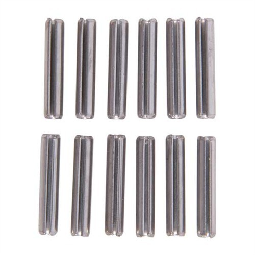 Con l'uso crescente dei roll pins nelle armi, abbiamo cercato un buon assortimento di essi in acciaio inossidabile da offrire. Finalmente l'abbiamo trovato - con 850 pin in 8 diametri e varie lunghezze (vedi sotto). Dovrebbe soddisfare la maggior parte delle esigenze delle armi! Ottimo anche per altri lavori in officina. Crea jigs, fixture, o usali per sostituire taper pins, dowels, groove pins, set screws, ecc. Non scivoleranno o vibreranno fuori. Facile da usare, poiché non richiedono filettatura o tappatura. Possono essere tagliati a qualsiasi lunghezza. Usa i Roll Pin Punches per una rimozione positiva e sicura.