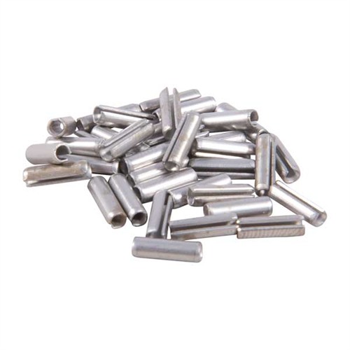 Con l'uso sempre crescente dei roll pins nelle armi, abbiamo cercato un buon assortimento di questi in acciaio inossidabile da offrire. Finalmente l'abbiamo trovato: 850 pin in 8 diametri e varie lunghezze (vedi sotto). Dovrebbero soddisfare la maggior parte delle esigenze delle armi! Ottimo anche per altri lavori in officina. Crea jigs, fixture, o usali per sostituire taper pins, dowels, groove pins, set screws, ecc. Non scivoleranno o vibreranno via. Facili da usare, poiché non richiedono filettatura o tappatura. Possono essere tagliati a qualsiasi lunghezza. Usa i Roll Pin Punches per una rimozione positiva e sicura.