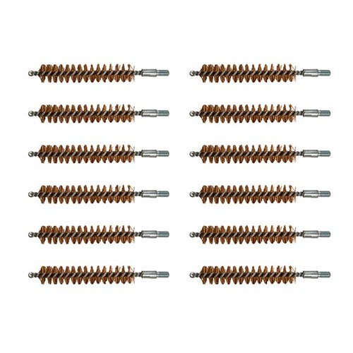 Since darn near as many bore brushes get used in the shop as get sold, we’ve packed these custom-made, top quality brushes in bulk paks to make them more convenient and less expensive. The shank is one-piece, looped and wound (not two, twisted together and chopped off). Bronze Bore Brushes - Best phosphor bronze scrubbing wire, for long life, thorough cleaning. SPECS: Bristles: Available in bronze. Shank: Steel, looped and wound. Rifle: 3.26” (8.3cm) OAL, .17 and.20 caliber 5-40 threads, all others 8-32 thread.