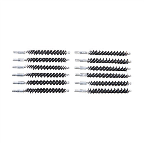 Since darn near as many bore brushes get used in the shop as get sold, we’ve packed these custom-made, top quality brushes in bulk paks to make them more convenient and less expensive. The shank is one-piece, looped and wound (not two, twisted together and chopped off). Nylon Bore Brush - New generation bore cleaners attack copper and bronze-based bullet jacket fouling aggressively and are just as hard on bronze cleaning brushes. Our nylon brushes stand up to these super cleaners and won’t cause accuracy-ruining scratches. One-piece, looped and wound steel shanks (except Black Powder (BP) series, .17 caliber, and .20 caliber, which have brass shanks). SPECS: Bristles: Available in nylon. Shank: Steel, looped and wound. Overall length: 3.27" (8.3cm) Threads: .17 and.20 caliber 5-40 threads, all others 8-32 thread.