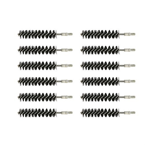 Since darn near as many bore brushes get used in the shop as get sold, we’ve packed these custom-made, top quality brushes in bulk paks to make them more convenient and less expensive. The shank is one-piece, looped and wound (not two, twisted together and chopped off). Nylon Bore Brush - New generation bore cleaners attack copper and bronze-based bullet jacket fouling aggressively and are just as hard on bronze cleaning brushes. Our nylon brushes stand up to these super cleaners and won’t cause accuracy-ruining scratches. One-piece, looped and wound steel shanks (except Black Powder (BP) series, .17 caliber, and .20 caliber, which have brass shanks). SPECS: Bristles: Available in nylon. Shank: Steel, looped and wound. Overall length: 3.27" (8.3cm) Threads: .17 and.20 caliber 5-40 threads, all others 8-32 thread.