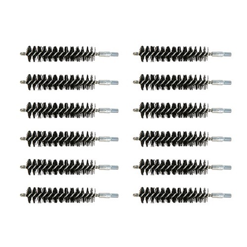 Since darn near as many bore brushes get used in the shop as get sold, we’ve packed these custom-made, top quality brushes in bulk paks to make them more convenient and less expensive. The shank is one-piece, looped and wound (not two, twisted together and chopped off). Nylon Bore Brush - New generation bore cleaners attack copper and bronze-based bullet jacket fouling aggressively and are just as hard on bronze cleaning brushes. Our nylon brushes stand up to these super cleaners and won’t cause accuracy-ruining scratches. One-piece, looped and wound steel shanks (except Black Powder (BP) series, .17 caliber, and .20 caliber, which have brass shanks). SPECS: Bristles: Available in nylon. Shank: Steel, looped and wound. Overall length: 3.27" (8.3cm) Threads: .17 and.20 caliber 5-40 threads, all others 8-32 thread.