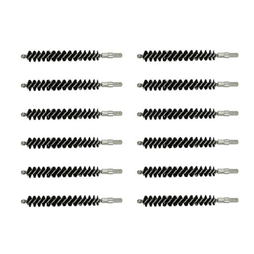 Since darn near as many bore brushes get used in the shop as get sold, we’ve packed these custom-made, top quality brushes in bulk paks to make them more convenient and less expensive. The shank is one-piece, looped and wound (not two, twisted together and chopped off). Nylon Bore Brush - New generation bore cleaners attack copper and bronze-based bullet jacket fouling aggressively and are just as hard on bronze cleaning brushes. Our nylon brushes stand up to these super cleaners and won’t cause accuracy-ruining scratches. One-piece, looped and wound steel shanks (except Black Powder (BP) series, .17 caliber, and .20 caliber, which have brass shanks). SPECS: Bristles: Available in nylon. Shank: Steel, looped and wound. Overall length: 3.27" (8.3cm) Threads: .17 and.20 caliber 5-40 threads, all others 8-32 thread.