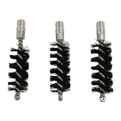 Since darn near as many bore brushes get used in the shop as get sold, we’ve packed these custom-made, top quality brushes in bulk paks to make them more convenient and less expensive. The shank is one-piece, looped and wound (not two, twisted together and chopped off). Nylon Bore Brush - New generation bore cleaners attack copper and bronze-based bullet jacket fouling aggressively and are just as hard on bronze cleaning brushes. Our nylon brushes stand up to these super cleaners and won’t cause accuracy-ruining scratches. One-piece, looped and wound steel shanks SPECS: Available in nylon. Shank: Steel, looped and wound Overall length: 2-7/8” (7.3cm) Threads: 5/16”-27 male