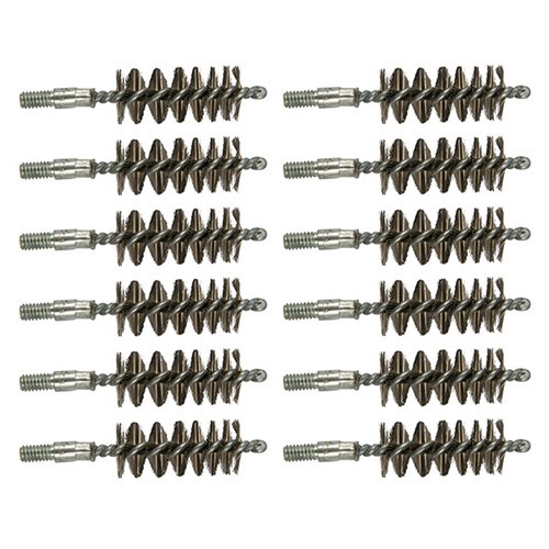 Since darn near as many bore brushes get used in the shop as get sold, we’ve packed these custom-made, top quality brushes in bulk paks to make them more convenient and less expensive. The shank is one-piece, looped and wound (not two, twisted together and chopped off). Stainless Steel Bore Brush - For severely leaded, fouled or rusted bores, the aggressive cleaning action of a stainless steel brush can help get them clean. However, the aggressive action accelerates wear, and regular use can shorten barrel life. SPECS: Bristles: Available in stainless steel. Shank: Steel, looped and wound. Overall length: 3.27" (8.3cm) Threads: .17 and.20 cal. 5-40 threads, all others 8-32 thread.