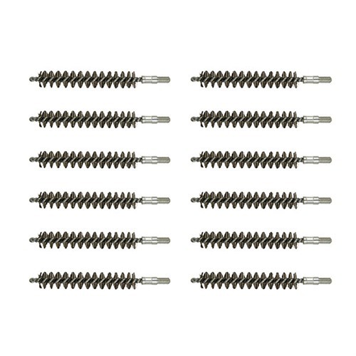 Since darn near as many bore brushes get used in the shop as get sold, we’ve packed these custom-made, top quality brushes in bulk paks to make them more convenient and less expensive. The shank is one-piece, looped and wound (not two, twisted together and chopped off). Stainless Steel Bore Brush - For severely leaded, fouled or rusted bores, the aggressive cleaning action of a stainless steel brush can help get them clean. However, the aggressive action accelerates wear, and regular use can shorten barrel life. SPECS: Bristles: Available in stainless steel. Shank: Steel, looped and wound. Overall length: 3.27" (8.3cm) Threads: .17 and.20 cal. 5-40 threads, all others 8-32 thread.
