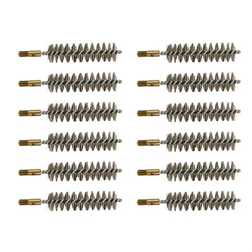 Since darn near as many bore brushes get used in the shop as get sold, we’ve packed these custom-made, top quality brushes in bulk paks to make them more convenient and less expensive. The shank is one-piece, looped and wound (not two, twisted together and chopped off). Stainless Steel Bore Brush - For severely leaded, fouled or rusted bores, the aggressive cleaning action of a stainless steel brush can help get them clean. However, the aggressive action accelerates wear, and regular use can shorten barrel life. SPECS: Bristles: Available in stainless steel. Shank: Steel, looped and wound. Overall Length: 3.27 (8.3cm) Threads: 10-32 male, for use with Dewey Large-Bore Coated Rods.