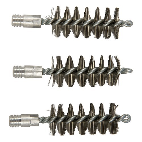 Since darn near as many bore brushes get used in the shop as get sold, we’ve packed these custom-made, top quality brushes in bulk paks to make them more convenient and less expensive. The shank is one-piece, looped and wound (not two, twisted together and chopped off). Stainless Steel Bore Brush - For severely leaded, fouled or rusted bores, the aggressive cleaning action of a stainless steel brush can help get them clean. However, the aggressive action accelerates wear, and regular use can shorten barrel life. SPECS: Bristles: Available in stainless steel. Shank: Steel, looped and wound. Overall length: 2-7/8" (7.3cm) Threads: 5/16"-27 male