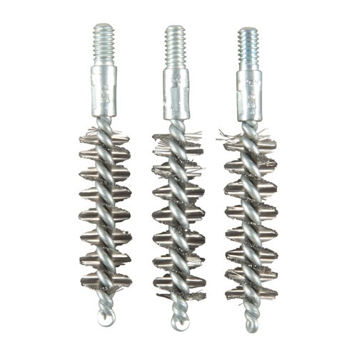 Since darn near as many bore brushes get used in the shop as get sold, we’ve packed these custom-made, top quality brushes in bulk paks to make them more convenient and less expensive. The shank is one-piece, looped and wound (not two, twisted together and chopped off). Stainless Steel Bore Brush - For severely leaded, fouled or rusted bores, the aggressive cleaning action of a stainless steel brush can help get them clean. However, the aggressive action accelerates wear, and regular use can shorten barrel life. SPECS Bristles: Available in stainless steel. Shank: Steel, looped and wound. Overall length: 2-1/8" (7.3cm) Threads: 8-32 male