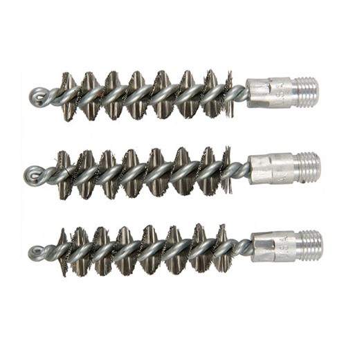 Since darn near as many bore brushes get used in the shop as get sold, we’ve packed these custom-made, top quality brushes in bulk paks to make them more convenient and less expensive. The shank is one-piece, looped and wound (not two, twisted together and chopped off). Stainless Steel Bore Brush - For severely leaded, fouled or rusted bores, the aggressive cleaning action of a stainless steel brush can help get them clean. However, the aggressive action accelerates wear, and regular use can shorten barrel life. SPECS: Bristles: Available in stainless steel. Shank: Steel, looped and wound. Overall length: 2-7/8" (7.3cm) Threads: 5/16"-27 male