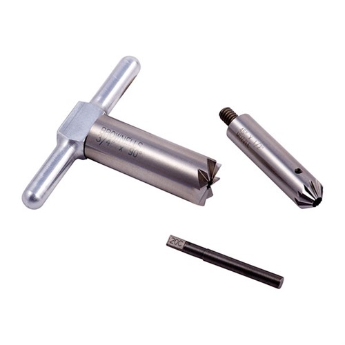 050806017382 Il set include: un cutter di faccia a 90° per quadratare una bocchetta dopo aver accorciato o riparare danni; un cutter di smussatura a 45° per smussare i bordi delle rigature per un'uscita pulita del proiettile o smussare la bocca del cilindro di un revolver per ricariche rapide; più un manico che si adatta a entrambi i cutter e un pilota in acciaio. Il pilota intercambiabile mantiene il cutter correttamente allineato. Acquista piloti extra per utilizzare un cutter per molti calibri diversi. Piloti per altri calibri disponibili separatamente.In arretrato, tempi di consegna circa 4-12 settimane dal magazzino negli Stati Uniti.