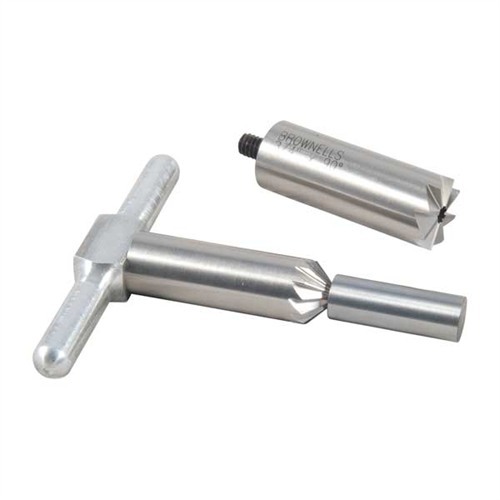 050806018662 Il set include: un cutter di faccia a 90° per quadratare una bocchetta dopo aver accorciato o riparare danni; un cutter di smussatura a 45° per smussare i bordi delle rigature per un'uscita pulita del proiettile o smussare la bocca del cilindro di un revolver per ricariche rapide; più un manico che si adatta a entrambi i cutter e un pilota in acciaio. Il pilota intercambiabile mantiene il cutter correttamente allineato. Acquista piloti extra per utilizzare un cutter per molti calibri diversi. Piloti per altri calibri disponibili separatamente.In arretrato, tempi di consegna circa 4-12 settimane dal magazzino negli Stati Uniti.