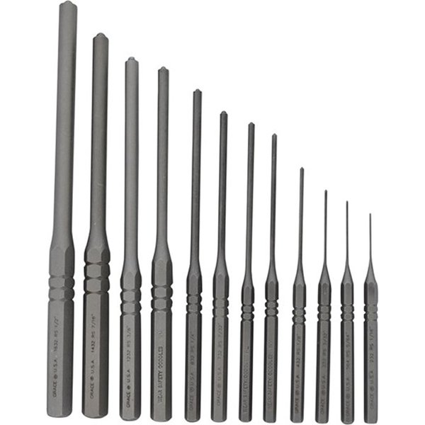 GRACE USA STEEL ROLL PIN PUNCHES The Grace USA Steel Roll Pin Punch Set is a high-quality collection of precision tools designed for gunsmiths, armorers, and firearm enthusiasts. Each punch is meticulously crafted to facilitate the safe removal and installation of roll pins in various firearms, ensuring both efficiency and the preservation of firearm integrity. Description and Features: Premium Construction: Each punch is made from carbon steel that has been heat-hardened, providing exceptional durability and longevity. Precision Design: The punches feature parallel-ground shanks and knurled handles, offering a secure grip and precise control during use. The 7-Piece set includes seven punches in the following sizes: 1/16" 5/64" 3/32" 1/8" 5/32" 3/16" 7/32" The 12-Piece set includes seven punches in the following sizes: 1/16" 5/64" 3/32" 1/8"" 5/32" 3/16" 7/32” 1/4" 5/16" 3/8" 7/16" 1/2" Specifications: Material: Heat-hardened carbon steel Handle Design: Knurled for enhanced grip Shank: Parallel-ground for precise alignment Customer Insights: Our customers report the Grace USA Steel Roll Pin Punch Set appreciate the robust construction and precise design of the punches. The heat-hardened carbon steel ensures durability, while the knurled handles provide a comfortable and secure grip. The variety of sizes included in the set allows for versatility in handling different roll pin tasks across various firearm models. Incorporating the Grace USA Steel Roll Pin Punch Set into your gunsmithing toolkit ensures you have reliable and precise tools for roll pin removal and installation, enhancing both the efficiency and quality of your firearm maintenance and assembly tasks.