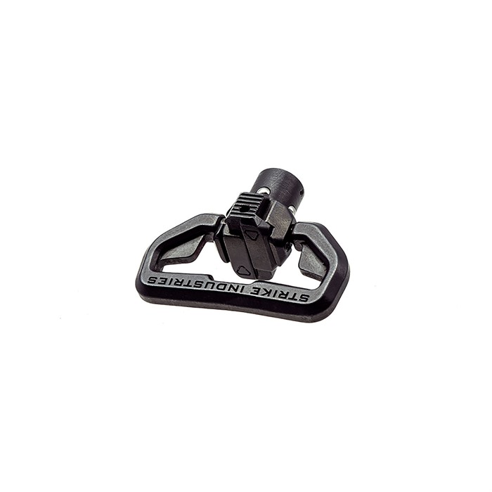 The Strike Industries Quick Detach Sling Loop is the most revolutionary design for QD attachments to date. With the ability to remove the QD with a single hand, the user can easily squeeze the mechanism for the simplest attachment and detachment. Instead of a traditional push button QD that is tough to disengage, the patent pending side to side mechanism allows for uninterrupted quick attach and detach while the sling is in use. Crafted from 17-4 Stainless Steel and after a quench polish quench (QPQ) process, the durability of the sling loop is greatly increased. The enhanced geometry of the sling loop allows the strap to never pinch, bite, or roll around the interior of the loop allowing for the maximum mobility and comfort in any tactical or training situation. Package Contents: x1 QDSL (Assembled) Features: (Patent Pending) Exclusive feature side to side squeeze mechanism for uninterrupted quick attach and detach while the sling is in use (Patent Pending) Sling loop is designed to minimize slings from rolling over, biting and bunching up Unprecedented ergonomic design from traditional QD sling attachment, squeeze/ pull to detach, squeeze push to attach Utility cord cut-out design in sling swivel, for extra retention, when using a makeshift sling (Standard only) Heat treated sling loop designed for extra load bearing and strength COMPATIBILITY: Firearms or accessories that has QD socket WARNING: Before every use, always check proper function of your QD sling loop and any wear and tear from use. Always have your weapon in the SAFE position when not being fired. Always follow all firearms safety rules and never point your weapon at anything you are not willing to destroy. CALIFORNIA PROPOSITION 65 WARNING: WARNING: This product contains chemicals known to the State of California to cause cancer and birth defects or other reproductive harm. For more information: www.P65Warnings.ca.gov