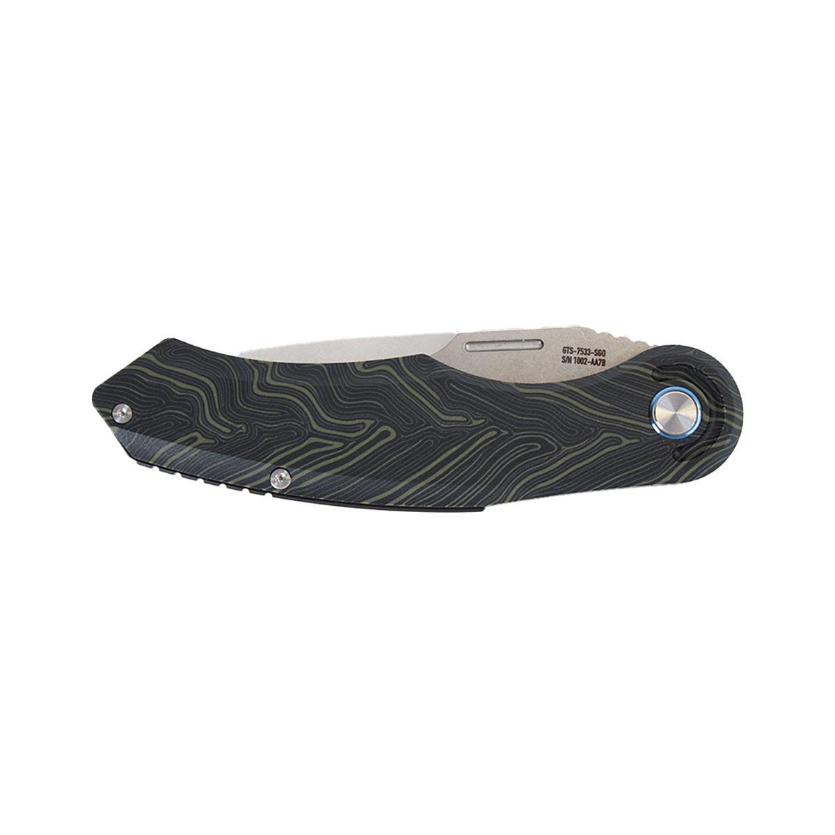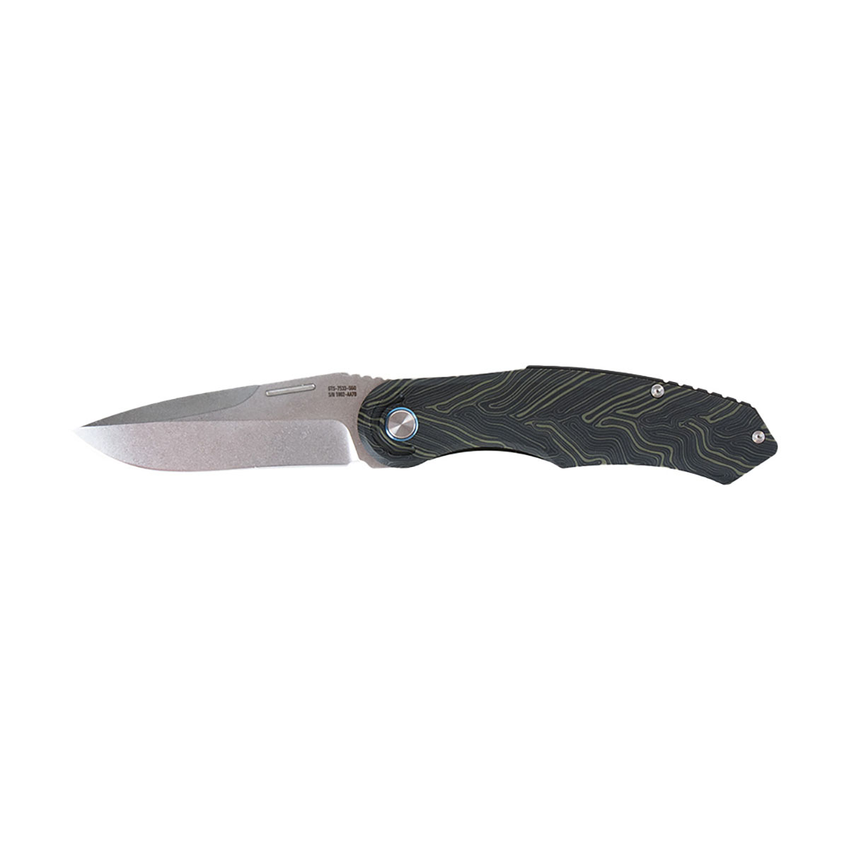 Il manico è realizzato in G10, un materiale robusto e leggero che ti offre una buona presa anche quando le mani sono bagnate o quando indossi guanti. Il manico presenta anche un design stilizzato della mappa topografica, conferendogli un aspetto unico da esterno che si adatta al nome Scout.