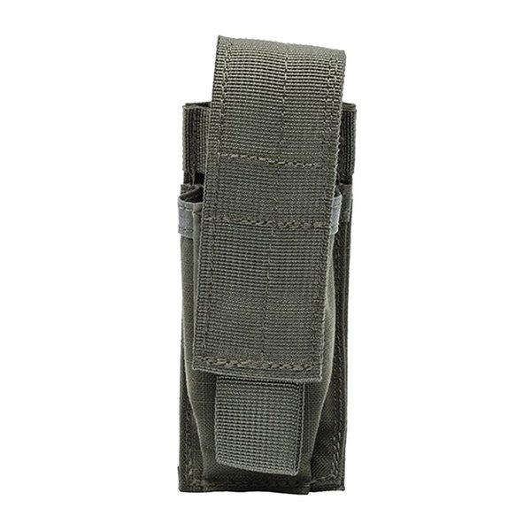 Blackhawk’s Single Pistol Mag Pouch lets you stash a spare magazine wherever you want it on your belt or tactical gear. Constructed of rugged 500 denier nylon, the Blackhawk Single Pistol Mag Pouch can be attached to any S.T.R.I.K.E or PALS/MOLLE gear. Secure storage for one double-stack pistol magazine Hook-and-loop sealed top flap keeps mag in, keeps crud out Grommets in the bottom let water drain out quickly No matter what your gear setup is, the Blackhawk Single Pistol Mag Pouch integrates with your pack, vest, or operator’s belt, so that spare mag that just might save the day is ready for an instant reload.
