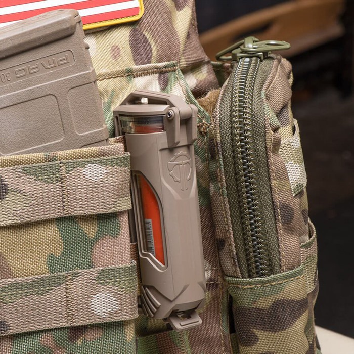 CELLVAULT-21 BATTERY STORAGE FOR 21700 AND STREAMLIGHT SL-B50 Protect your spare 21700 battery while keeping it immediately accessible with the CellVault-21 Rechargeable Battery Storage. Premium batteries require protection from physical and environmental damage but need to remain accessible to keep advanced tactical lights running at full power. The CellVault-21 Rechargeable Battery Storage provides the same feature set as our popular CellVault-18 including dual-wall construction & side viewing windows but adds a larger capacity and an upgraded latch that allows for easy installation, especially on tight MOLLE/PALS webbing. FEATURES: Holds one 21700 Rechargeable Battery Holds one Streamlight SL-B50 Battery (with foam removed) Waterproof O-ring seal rated to IPX7 at 2 meters for 30+ minutes Secure metal latch seals and attaches the CellVault-21 to gear Silicone foam shock absorber/noise silencer Clear side windows allow for gear status checks Slim profile: less than 1 MOLLE/PALS column wide for easy integration into existing gear configurations Detachable latch installs easily on all MOLLE and can be backed up with the included security pin Designed and manufactured in the USA INSTALLATION: Unlock the bottom latch and open the CellVault-21. Press the release tab with a screwdriver or similar tool to release the latch from the back strap. Insert the back strap through the MOLLE/PALS webbing. Align the side tabs and snap the latch back into the back strap. Install additional security pin through both the latch and back strap if necessary. Verify foam shock absorber is at the bottom of the CellVault-21 tube. Insert battery with the positive (+) terminal towards the foam at the bottom. Close the latch, making sure no material is caught in the tube/cap interface.