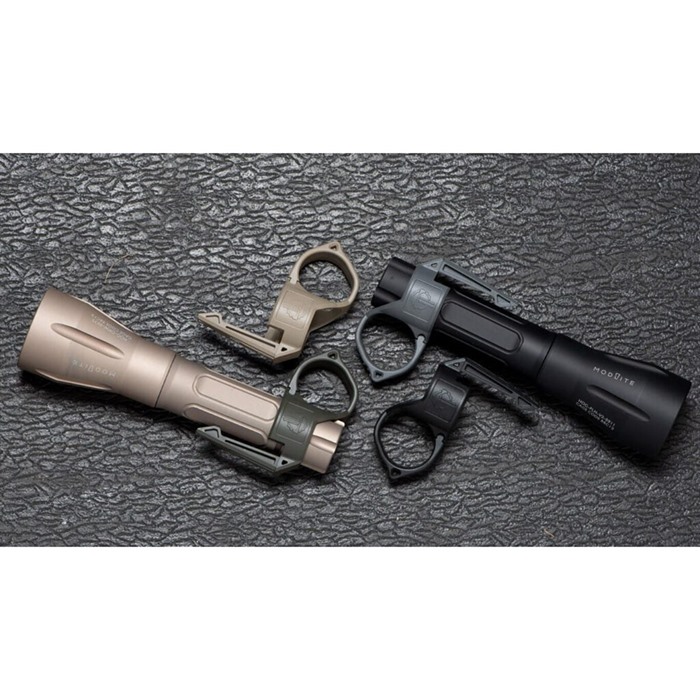 Il SwitchBack® HOG Flashlight Ring è progettato per le torce Modlite HOG, aggiungendo un anello multifunzionale per le dita e una robusta clip da tasca. Questo accessorio si monta saldamente sul tappo posteriore della torcia, fornendo un indice di presa ripetibile durante il dispiegamento dalla tasca o dalla borsa, e migliora l'ergonomia mentre si spara o si cerca.
