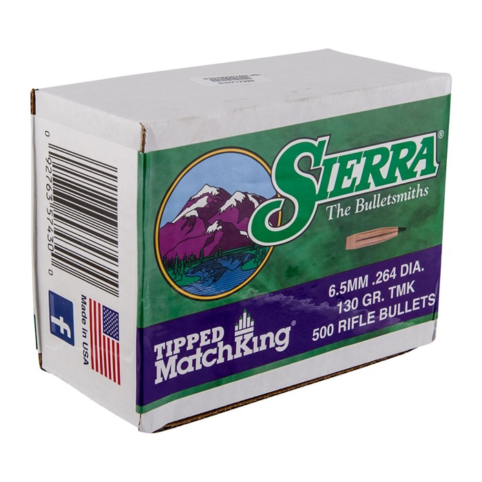 I proiettili Tipped MatchKing (TMK) da 6,5 mm (0.264") di SIERRA BULLETS sono progettati per offrire prestazioni superiori e precisione imbattili. Grazie all'aggiunta della punta in resina acetale, questi proiettili riducono la resistenza all'aria, migliorando il coefficiente balistico.