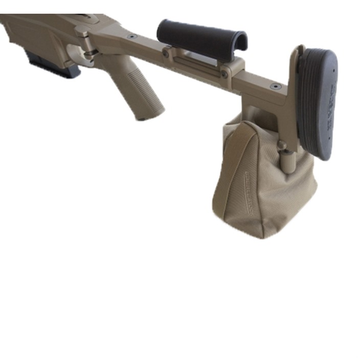 Questo semplice sistema consente un'infinità di variazioni di elevazione fine, da quasi a terra fino a 5 ½ pollici. Realizzato in nylon 1000 denier, con cinghie in tessuto da 25 mm su tre dei suoi lati. Usa queste ultime per appenderlo al tuo zaino o borsa da tiro, o semplicemente slancialo sopra il tuo canna del fucile se hai bisogno di muoverti rapidamente.