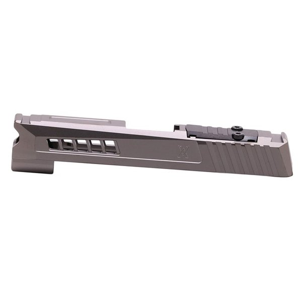 Perfect replacement for the MACRO, XL, X, or even the standard 365 lowers/FCUs (will not fit 380 version). 100% US Manufactured and Designed slide. This is a fully finished new slide (stripped). No need to send in yours. Cut from solid billet 17-4ph Certified Steel. Heat treated to spec. Attractive side cut windows and top milled pocket. Aggressive reduced & scalloped front. Angled rear serrations. Available in several finishes including: Satin Stainless, Black DLC, Stealth Grey PVD, and Gold TiN. Optic cut footprint is compatible with the following optics: Shield Arms RMSc, RMS, RMSw, SMS, Holosun EPS Carry, 507K, 407K, HEX Wasp, Sig RomeoZero, Sig RomeoZero Pro, Swampfox Sentinel 1x16, JP Enterprises Jpoint, & Vector Optics Frenzy-S 1x17x24 MIC sights. This list is not exhaustive and additional optics that will fit the above style footprints will also work. Includes an anodized black optic cover plate with mounting screws for use without an optic installed.