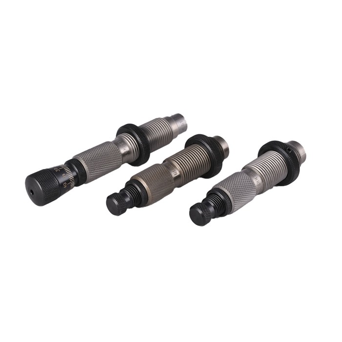 Queste caratteristiche consentono al ricaricatore di avere un controllo completo e una precisione nella regolazione della tensione del collo, senza il timore di sovraccaricare il rame nel collo della cartuccia. Inoltre, i bushings sono liberi di galleggiare per centrare automaticamente il collo della cartuccia, garantendo un elevato grado di precisione nella dimensione.