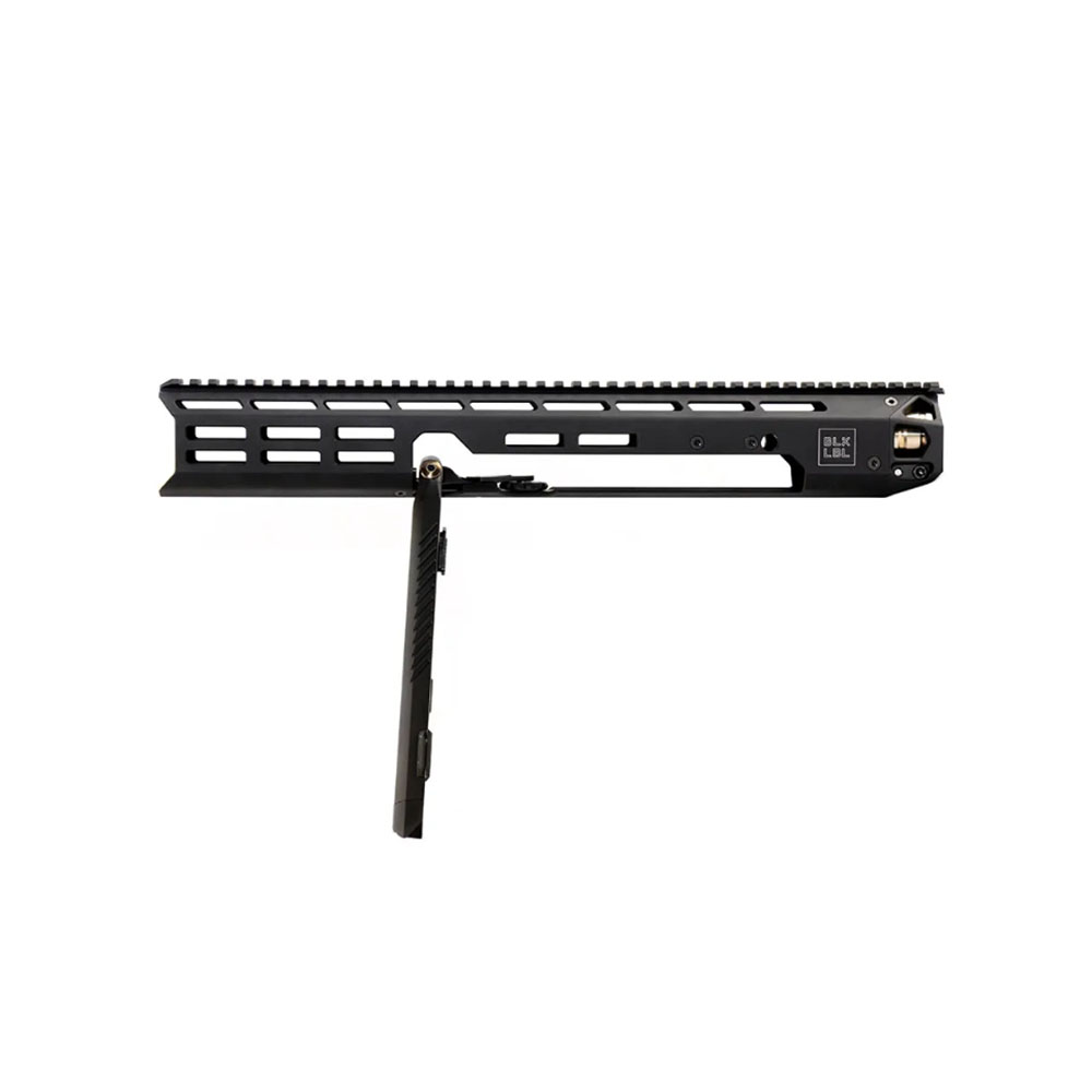 Quando non è in uso, le gambe del bipiede BLK LBL si piegano facilmente verso il retro, rimanendo a filo con il guardamano. Questo significa che non si impigliano in abbigliamento, attrezzature o rami mentre sei in movimento, e non interferiscono quando si spara a mano libera, da una barricata o anche durante la conservazione del tuo fucile.
