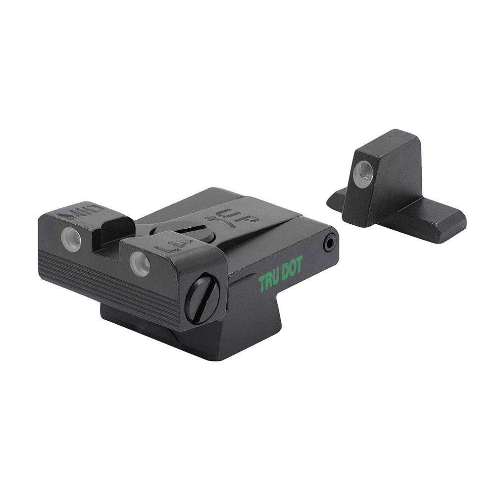TRU-DOT® adjustable models offer a handgun sighting system for improved rapid instinctive aiming which requires no transition from day to night use. Day and night, the shooter’s aiming reference is three solid dots, identical in appearance and location under all light conditions.
