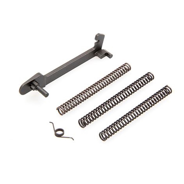 Questo componente, lavorato e completamente indurito, richiede solo una leggera adattabilità. Le molle percussore in cromo silicio a potenza ridotta e la molla di ritorno del grilletto a potenza standard manterranno la loro tensione molto più a lungo rispetto alle molle di fabbrica convenzionali. Inoltre, la gamma di pesi delle molle percussore fornite può essere adattata all'ammunizione e alla forza di tiro che preferisci.