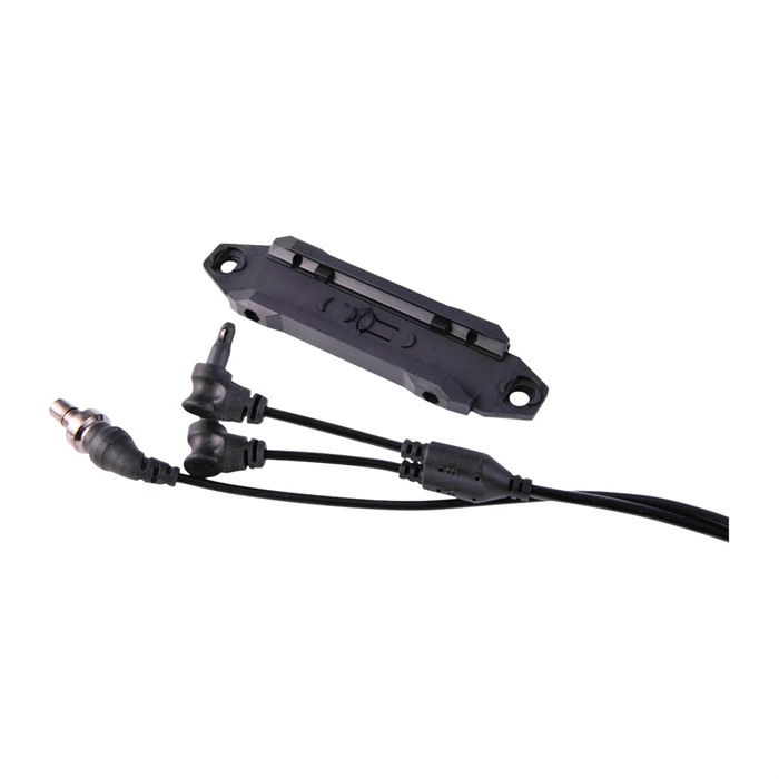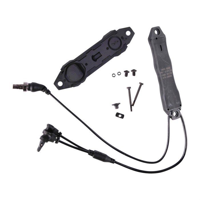 Questo interruttore TAPS viene fornito di serie con un cavo per luci Surefire e un cavo per laser MIL-Standard / Crane che si adatta ai laser standard NATO di Insight Technology, Steiner, B.E. Meyers e altri.
