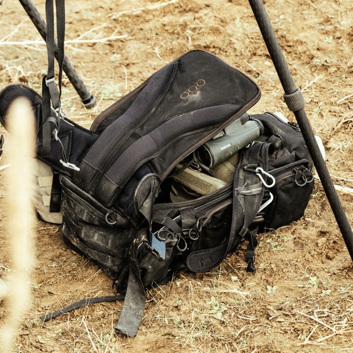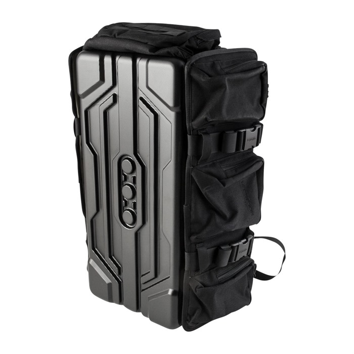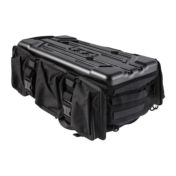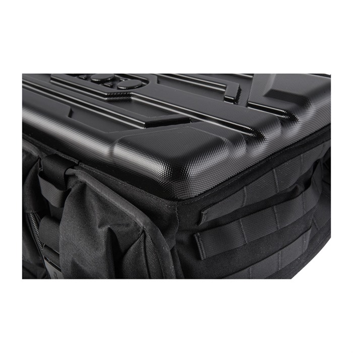 La sua faccia esterna in policarbonato è progettata per colpire il terreno e rimanere lì, mentre armi e attrezzatura escono direttamente. I pannelli laterali, ognuno con tre tasche con zip, si estendono per permettere l'installazione di custodie per fucili. Puoi aggiungere un tappetino da tiro o un treppiede con le cinghie di presa.