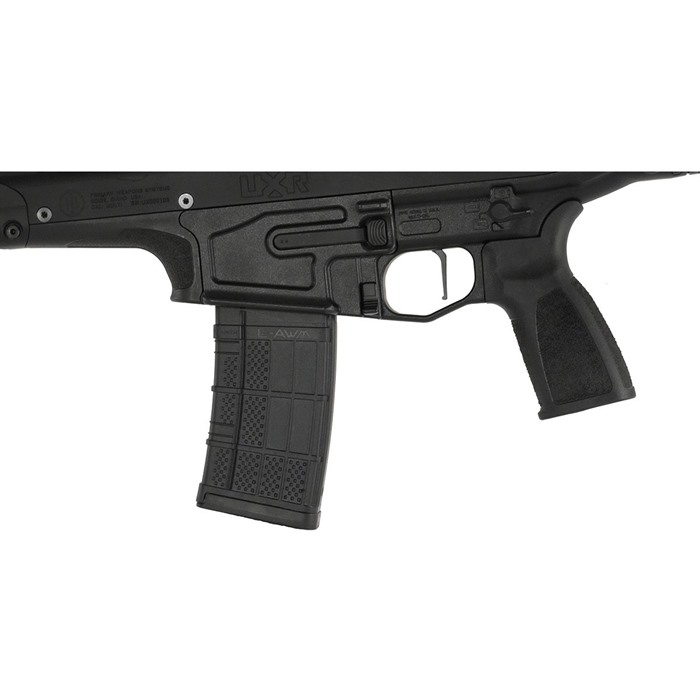 UXR THE NEW PROPRIETARY UXR, OR “USER XCHANGE RIFLE”, IS THE PINNACLE OF FIREARM INNOVATION. THIS REVOLUTIONARY SYSTEM OFFERS UNMATCHED MODULARITY AND PERFORMANCE. FEATURES: XCHANGE Buttstock Module: Picatinny/1913/STANAG Rail mount interface, foldable with 6 position adjustable length of pull for 2.5” travel, ambidextrous LOP button and QD sling cups, 1” webbing sling slot mount, comfort-shoot rubber buttpad, and completed with a 2 position, height-adjustable cheek rest. Reversible Folding Stock Mount: Choose your preferred side for folding the XCHANGE Buttstock Module. XCHANGE Fire Control Housing Module: ergonomically designed UXR pistol grip also compatible with other AR15 style grips, ambidextrous QD sling cups, and oversized trigger guard. XCHANGE Fire Control Module: Housing compatible with most AR15 triggers. XCHANGE Magazine Well Module: Easily exchange modules for 5.56 NATO or 7.62 NATO magazines, complete with ambidextrous magazine release button and bolt stop/release 7075 Aluminum Receiver: Serialized upper receiver; universally compatible with multiple caliber configurations. XCHANGE Titanium Trunnion: Return-to-zero-barrel clamp for precision modularity. STANAG Top Rail: 18” usable length for optics and accessory mounts. XCHANGE Handguard: Tooless and replaceable MLOK handguard for length customization. Ambidextrous Folding Charging Handle: Snag-free and configurable for left or right handed users. XCHANGE Barrel Exchange System: Swap calibers and barrel lengths rapidly with standard tooling, while maintaining repeatability and accuracy. Ambidextrous Rocker Valve/Modified Long-Stroke Gas System: Select 3 gas settings effortlessly. XCHANGE Evacuation Chamber: Supports suppressed and high rate of fire by removing noxious gasses from the operator’s face and keeping the operating system cleaner. Taper Muzzle Shoulder Lock: Perfect alignment and accessory lock for muzzle devices. Universal Recoil Spring: Adaptable to various calibers and configurations. Universal Bolt Carrier Group: Quick exchange bolt head assemblies for easy caliber conversions