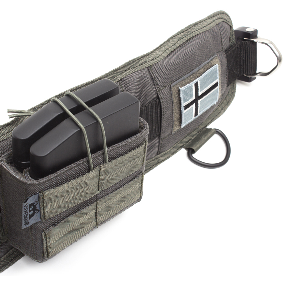 La tasca universale per caricatori di Ulfhednar è progettata per accogliere anche i grandi caricatori AICS. Grazie ai pad in velcro e al loop bungee, la tasca può essere regolata per adattarsi a diverse dimensioni di caricatori.