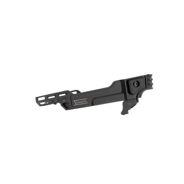 Discover the pinnacle of firearm enhancement with the Vendetta™ chassis system. Crafted from high-quality aluminum, this chassis not only enhances the aesthetics of your firearm but also delivers unparalleled durability and performance. The M-LOK® rail provides a versatile platform for mounting lights and other accessories, allowing you to customize your setup to suit your shooting needs. Ships with Chassis, Rail, Grip Insert, Grip Insert Screw, 6 Rail Screws, and 2 Allen Keys. FEATURES: Material: 6061 T6 Finish: MilSpec Type II Anodized Lightweight Design with Slim Profile (15 oz.) Free Float Rail with Centrally Positioned MLOK® Slots Machined-in QD Sockets Compatible with All Standard AR-style Grips 5° angled back rail for Folding Stocks or Braces Compatible with Fixed Barrel Ruger® 10/22® Pattern Barreled Actions Manufactured in the USA Limited Lifetime Warranty