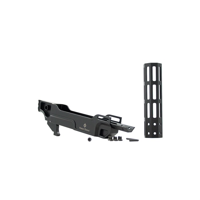 Realizzato in alluminio di alta qualità, questo chassis non solo migliora l'estetica della tua arma, ma offre anche un'incredibile durabilità e prestazioni. Il rail M-LOK® fornisce una piattaforma versatile per montare luci e altri accessori, permettendoti di personalizzare il tuo setup in base alle tue esigenze di tiro.