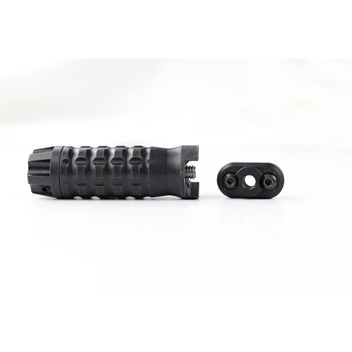 Samson Manufacturing Vertical Grips are renowned in the shooting world for their quality. Constructed from high-quality precision-machined aluminum, these grips are built to withstand the rigors of intense use. When it comes to installation, they excel in simplicity. With their tool-less installation mechanism, you can effortlessly attach or detach the grip to your firearm without the need for any specialized tools. This system allows for quick and hassle-free modifications. FEATURES: Material: 6061-T6 aluminum or Polymer depending on model Finish: Black MIL-A 8625 type III class 2 anodizing Made in Keene, New Hampshire, USA SHORT: 2.125" MEDIUM: 3.50" LONG: 4.20"