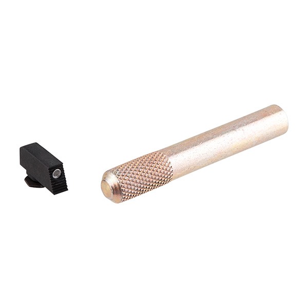 - Rimuovi il Vecchio Mirino: Usa lo strumento per mirini per rimuovere con attenzione il mirino anteriore esistente dalla Glock® 42/43.