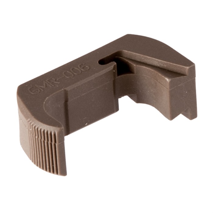 The Vickers Tactical GMR-006 Extended Magazine Release from Tangodown is a simple, drop-in upgrade for the Glock® 43 that makes it easy for the shooter to drop the magazine quickly under stress. Unlike the small factory part that causes many shooters to shift their grip in order to operate the release, the Vickers Tactical button is optimized for fast, positive operation regardless of the size or length of your thumb. The deeply serrated contact surface ensures that once you locate the button, your thumb will not slip, even if your hand is wet. Made of tough reinforced molded polymer Easy to install in a few minutes Requires no other alterations required to pistol Available in four distinctive colors The GMR-006 extended mag release is contoured so it's easy to locate by feel, while the same time it resists unintentional activation, such as when you place your G43 on a hard surface. The Vickers Tactical extended magazine release for Glock 43® is also ambidextrous. Both characteristics provide a valuable advantage on this extremely compact concealed carry pistol.