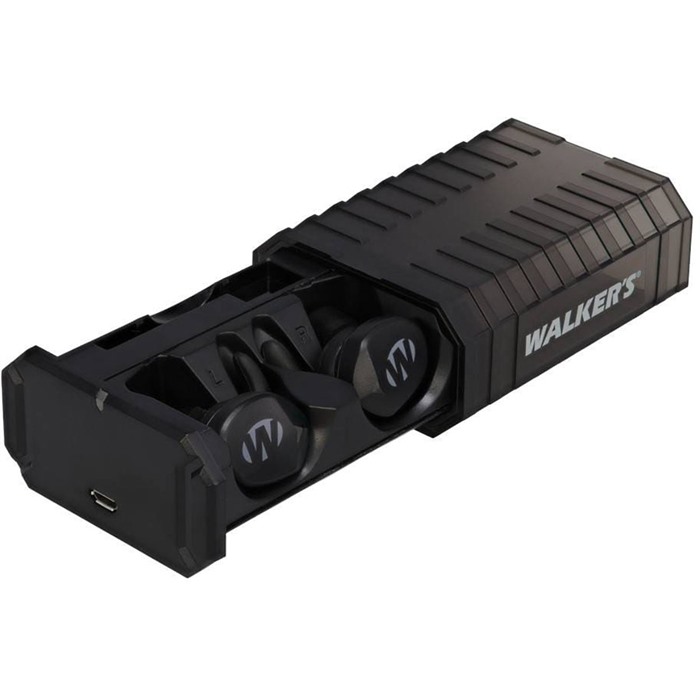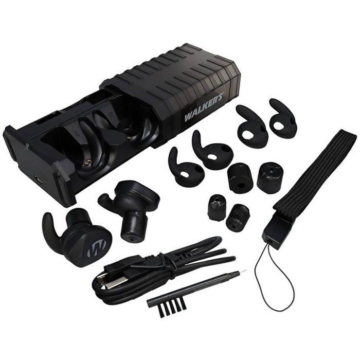 WALKER’S RESTRICTOR EAR BUDS W/BLUETOOTH Walker’s Restrictor BT Earbuds combine an impressive 24 dB NRR (Noise Reduction Rating) to shield your hearing from gunshots and other loud noises, while integrating Bluetooth® 5.0 for seamless connectivity through the Walker’s Link app. With the app, users can independently control each earbud and switch between four advanced sound modes. Sound Activated Compression technology delivers crystal-clear digital hearing enhancement without compromising wearers’ safety. They feature the Sure-Lock™ fin and foam tip system and ergonomically placed buttons that are both easy to access and sleek in appearance. Rechargeable using the included micro-USB cable. Stay protected and connected with our Restrictor BT Earbuds—the next evolution in sound enhancement and hearing protection technology. Designed for shooters, hunters and other outdoor enthusiasts, these premium earbuds combine an impressive 24 dB NRR (Noise Reduction Rating) to shield your hearing from gunshots and other loud noises, while integrating Bluetooth® 5.0 for seamless connectivity through the Walker’s Link app. With the app, users can independently control each earbud’s volume, activate sleep modes, monitor battery life, and switch between four advanced sound modes—Universal, High Frequency, Power Boost, and Clear Voice—for an experience tailored to their environment at any given moment. This ensures wearers are prepared for shooting and other excessively loud scenarios by arming them with SAC (Sound Activated Compression) technology, which delivers crystal-clear digital hearing enhancement without compromising wearers’ safety. Plus, everything about the appearance and functionality of the buds is streamlined and intuitive, from the patented Sure-Lock™ fin and foam tip system to the ergonomically placed buttons that are both easy to access and sleek in their appearance. And at the end of a long day at the range, the duo’s built-in lithium batteries, which provide up to 14 hours’ worth of runtime, are easily recharged using the included micro-USB cable, so you always have appropriate hearing coverage juiced up and ready. FEATURES: Earbud-style sound management technology protects and amplifies sounds based on the situation Bluetooth 5.0 connectivity delivers high-quality audio to connected mobile devices via the Walker’s Link app for iOS and Android Four frequency modes, including Universal, Clear Voice, High Frequency, and Power Boost Easy operation via Walker’s Link app through your mobile device or smartwatch Dynamic speakers deliver enhanced audio output