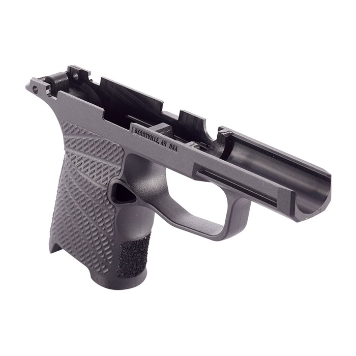 Wilson Combat has reengineered the SIG-SAUER P365/P365 XL grip frame to optimize its practical shooting and concealed carry potential. These all-new molded polymer grip modules will enhance your grip and improve recoil control. The significant improvements in shape, texture, and overall ergonomics will give your P365 the superb feel of an expertly hand sculpted custom gun with a simple grip change. These six new models cover standard and XL P365 frames, with or without a manual safety in black and tan color. Wilson Combat’s fresh look at the P365 grip module incorporates the suggestions of tactical trainers, champion shooters, and firearms experts into the final product that has a look that is unmistakably “Wilson”. It is the most practical, comfortable, and stylish P365 grip available and the ideal choice for concealed carry and defensive handgun use. These are non-serialized, newly manufactured grip modules and are not serial numbered firearms. The Wilson Combat SIG-SAUER P365 Polymer Grip Module features: Upgraded, high-cut 1911-style beavertail grip tang for smooth draws Modified backstrap shape for more natural pointing and enhanced grip and recoil control Undercut front-strap and reshaped, radiused trigger guard for the highest grip possible Improved grip traction and increased grip pattern coverage with Wilson Combat’s exclusive Starburst grip pattern on the sides and aggressive texturing on the front and backstrap Internal Slots for Rod-style Tungsten Weights (Sold separately) Factory SIG-SAUER magazine release, spring, and lock included Compatible with all standard holsters 1.4 oz 6 1/8" long 3 1/8" tall 2" grip (front to back) 1 1/8" grip (side to side) Light Compatability: Streamlight - TLR-6 Tactical Gun Light Streamlight - TLR-7 Sub Ultra-Compact Tactical Gun Light Crimson Trace LTG 772 Lightguard Crimson Trace LTG 422 Sig Sauer Foxtrot365 Surefire XSC Micro-Compact Handgun Light Any light compatible with Sig Factory 365 Modules