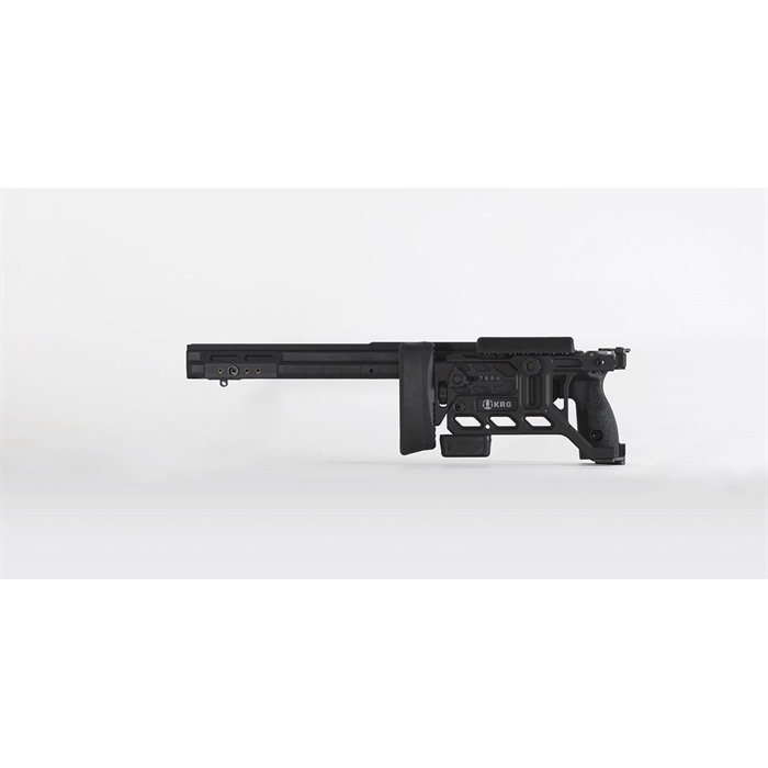 I pannelli grip modulari di KRG consentono al tiratore di adattare la calciatura alla propria mano, il che, combinato con le altre regolazioni, offre una calciatura configurata esattamente come necessita a quel particolare tiratore. La più recente Generazione (6) presenta un nuovo meccanismo di bloccaggio della lunghezza di corsa che è un po' più snello rispetto alle generazioni precedenti e consente regolazioni più rapide.