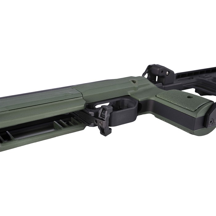 Pronto all'uso, consente l'impiego di caricatori in stile AICS (non inclusi) nel tuo fucile senza necessità di metallo inferiore speciale. Numerosi tipi di accessori possono essere aggiunti ai molteplici punti di attacco, tra cui: