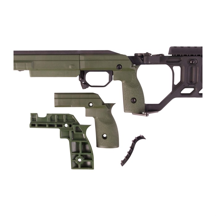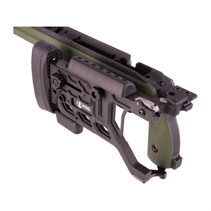 I pannelli modulari del grip KRG consentono al tiratore di adattare la vestibilità del calcio alla propria mano, il che, combinato con le altre regolazioni, offre una configurazione del calcio esattamente come deve essere per quel particolare tiratore.