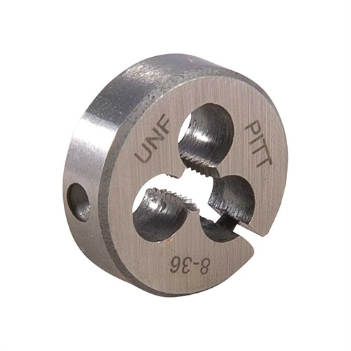 Questi dies sono disponibili in una gamma di dimensioni di calibro, per soddisfare diverse esigenze di filettatura. Ogni die presenta un diametro esterno di 13/16", rendendoli compatibili con i mandrini standard. L'uso dell'acciaio al carbonio consente una facile rimozione dei frammenti di die rotti, poiché possono essere frantumati con un punzone se necessario.
