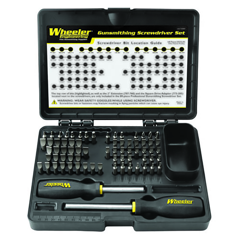 661120767374 Che tu stia lavorando su un Browning® Superposed, un Remington® 700, un revolver Smith & Wesson® o un Colt® Single Action, troverai che c'è un bit adatto per ogni vite della tua arma. I 54 bit piatti a fondo cavo variano in dimensione da .120"x.020" a .360"x.070", e includono doppi nei formati più sottili. Qualsiasi armaiolo ti dirà che di tanto in tanto romperai i bit ultra-sottili su viti ostinate. Questo set include due di ciascuno dei bit più sottili, il che significa che non ti troverai mai bloccato a metà lavoro senza il bit giusto. Il set include anche una selezione completa di bit Phillips, Allen e Torx per coprire anelli per ottiche, basi, pad di rinculo e simili. La differenza tra il "set base" e il "set professionale" risiede nei 15 ingegnosi "bit speciali" inclusi nel "set professionale". Questi bit sono ottimi per installare basi per ottiche, per tirarti fuori dai guai fornendo un piccolo punzone quando ne hai davvero bisogno, e per tenere a portata di mano strumenti salvavita che usi occasionalmente.Rimosso dal programma dal produttore